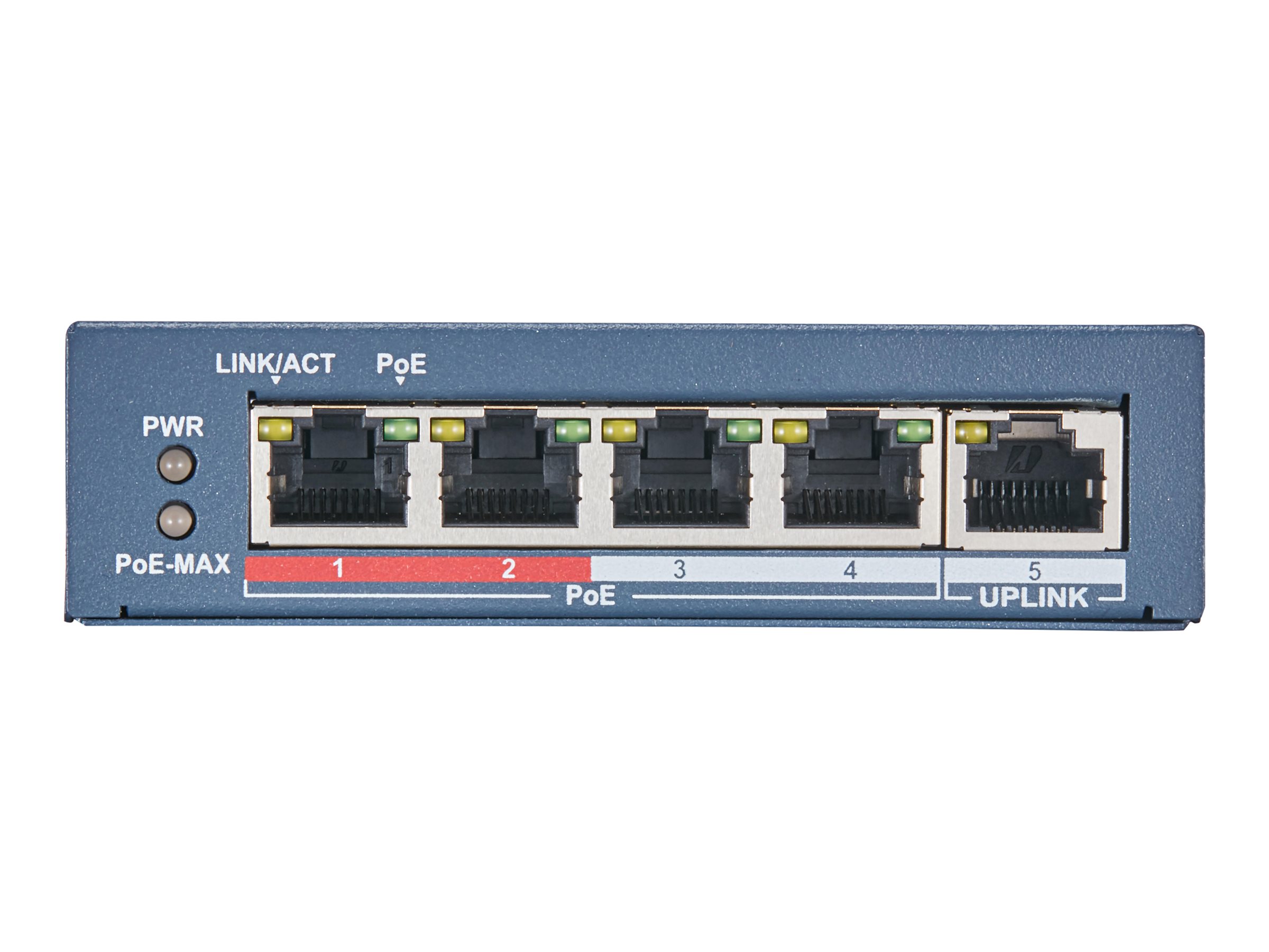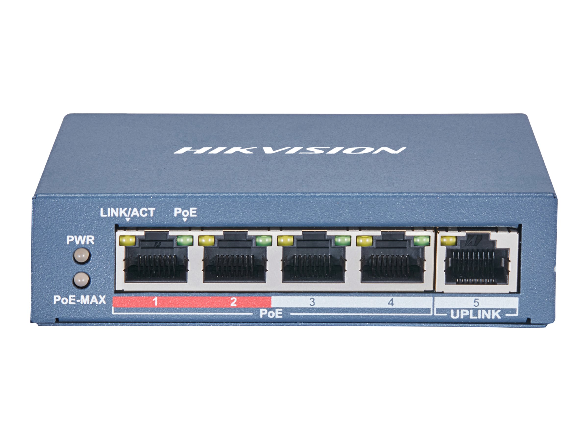 Hikvision Pro Series DS-3E0105P-E(B) – Conmutador – sin gestionar – 4 x 10/100 (PoE+) + 1 x 10/100 (enlace ascendente) – sobremesa – PoE+ (60 W)