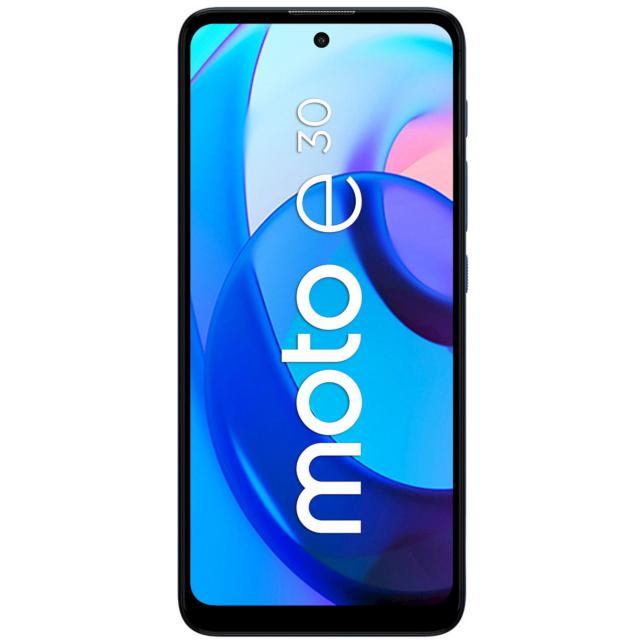 Motorola Moto E30 – 4G smartphone – SIM doble – RAM 2 GB / Memoria interna 32 GB – microSD slot – pantalla LCD – 6.5″ – 1600 x 720 píxeles (90 Hz) – 3 x cámaras traseras 48 MP, 2 MP, 2 MP – front camera 8 MP – azul digital